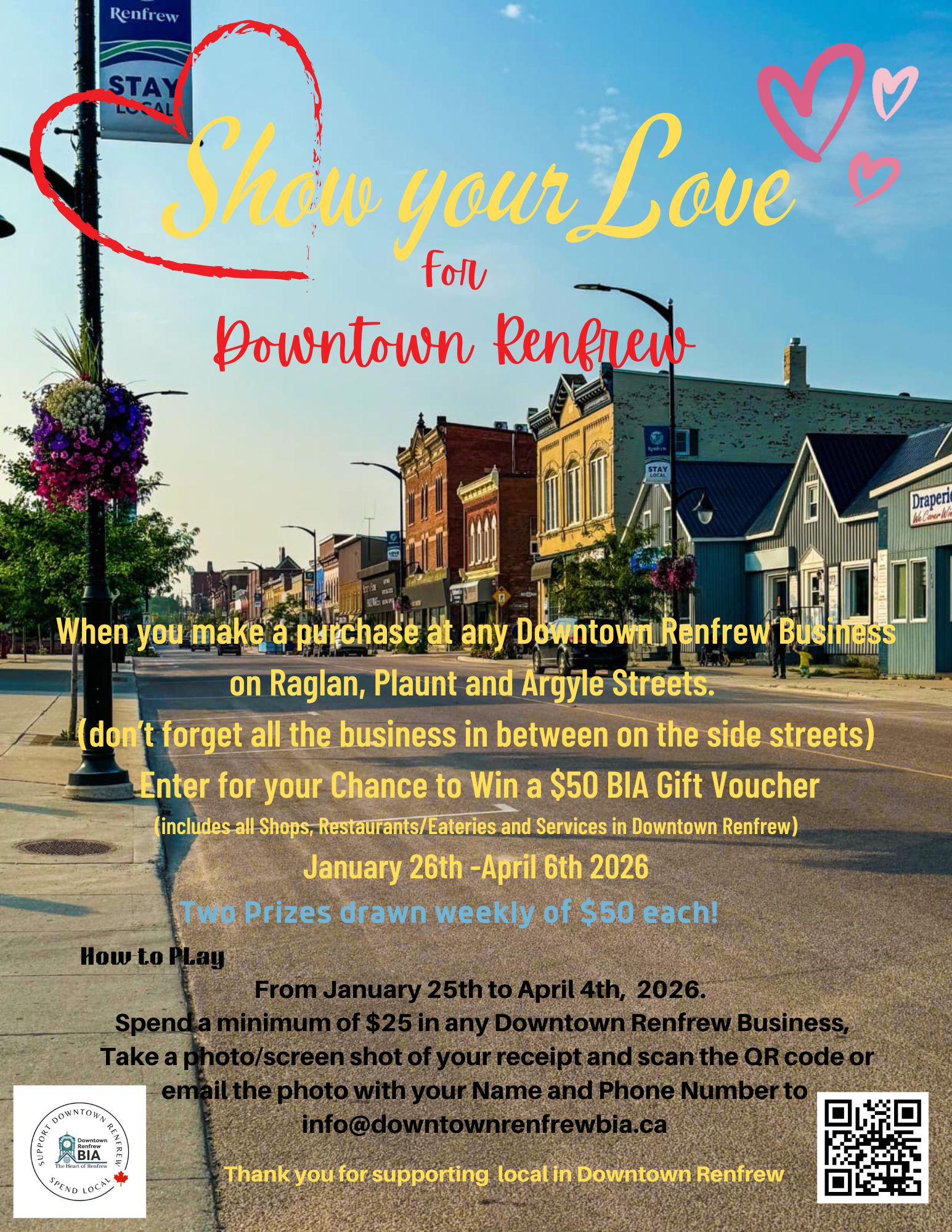 Let’s show our Downtown business community some love. The Downtown Renfrew giftcard can be used at over 50 50 businesses throughout Downtown Renfrew.
